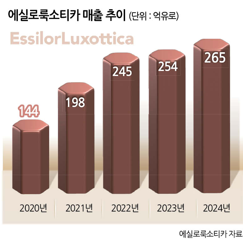 메타는 에실로룩소티카와 손잡고 카메라와 스피커 등이 장착된 레이밴 브랜드의 스마트 안경을 2021년부터 선보여왔다. 에실로룩소티카는 관련 사업이 실적을 이끌며 매년 매출이 증가하는 추세다.