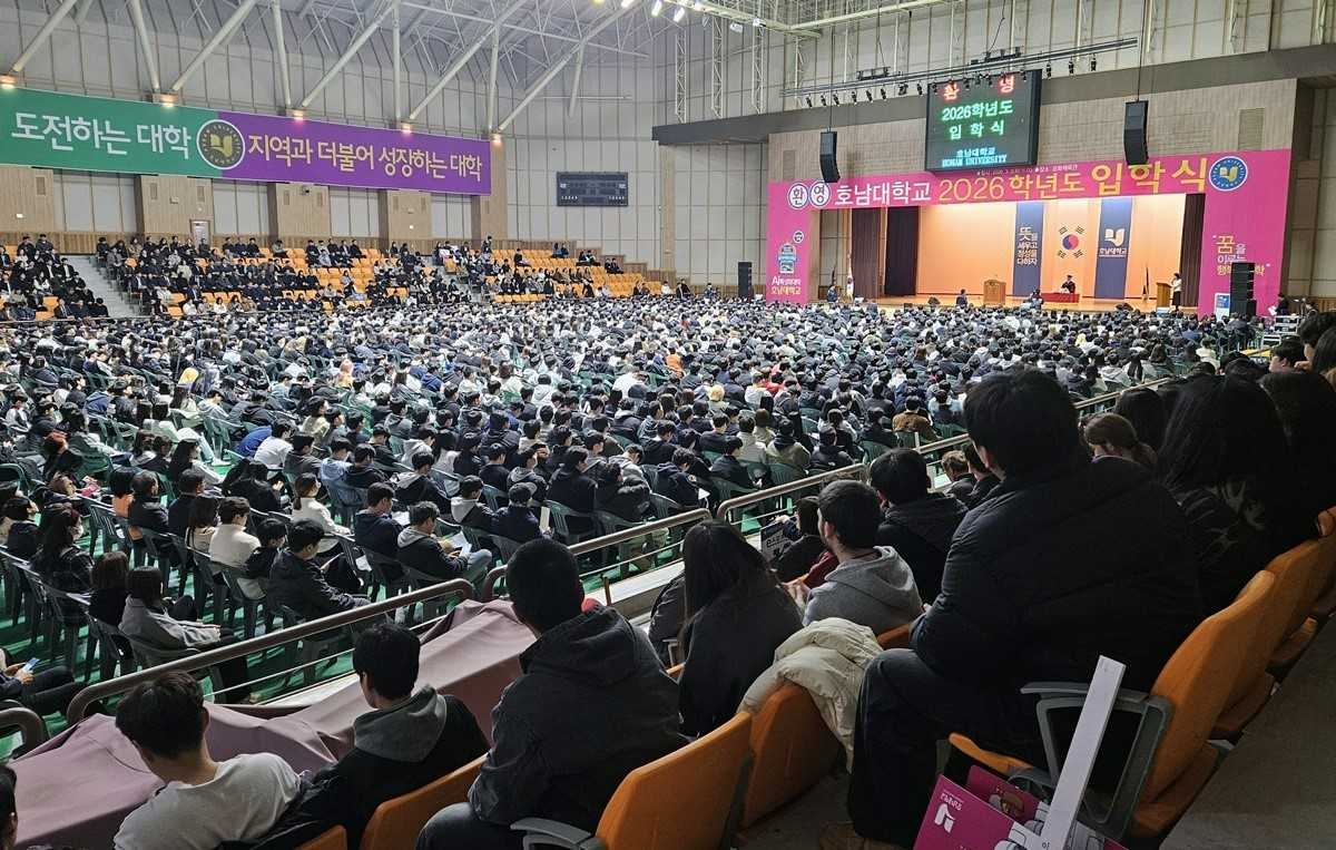| 호남대학교는 3일 오전 11시 교내 문화체육관에서 ‘2026학년도 입학식’을 갖고, 신입생 1692명의 힘찬 출발을 축하했다. |