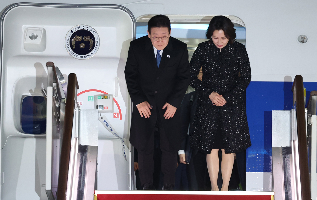이재명 대통령을 태운 공군 1호기는 이날 저녁 10시경 서울 성남공항에 도착했다.