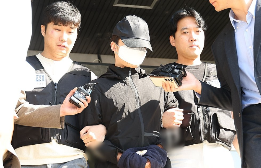 | 2024년 5월 서울 강남역 인근 건물 옥상에서 여자친구를 흉기로 찔러 살해한 의대생 최모(27) 씨가 서울 서초경찰서에서 검찰로 송치되고 있다. [연합] |