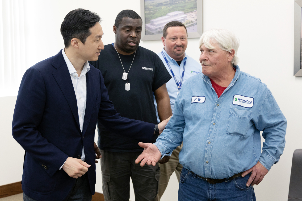| 정기선 HD현대 회장이 2023년 4월 미국 앨라배마주 몽고메리에 위치한 HD현대일렉트릭 변압기 공장 방문한 당시의 모습. [HD현대 제공] |