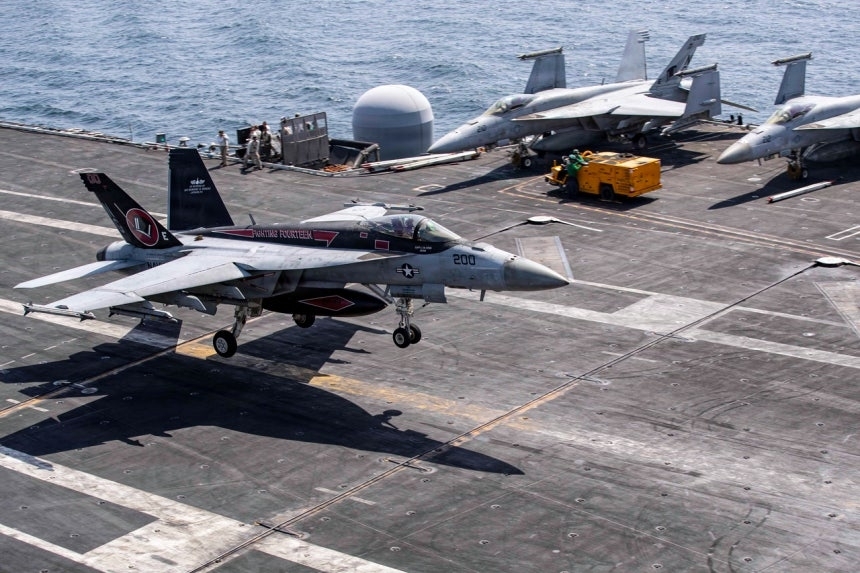 | 지난달 28일(현지시간) 미군이 항공모함에서 이란에 대한 ‘장대한 분노’ 작전을 수행하는 모습. [美 중부사령부 CENTCOM 제공 / AP] |