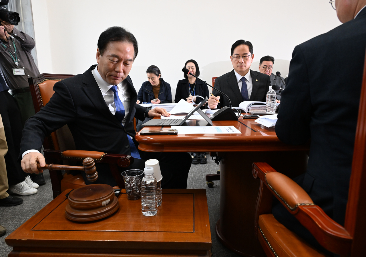 | 5일 서울 여의도 국회에서 열린 대미투자특별법처리를위한특별위원회 법안심사소위원회에서 정태호 위원장이 회의를 주재하고 있다. 이상섭 기자 |