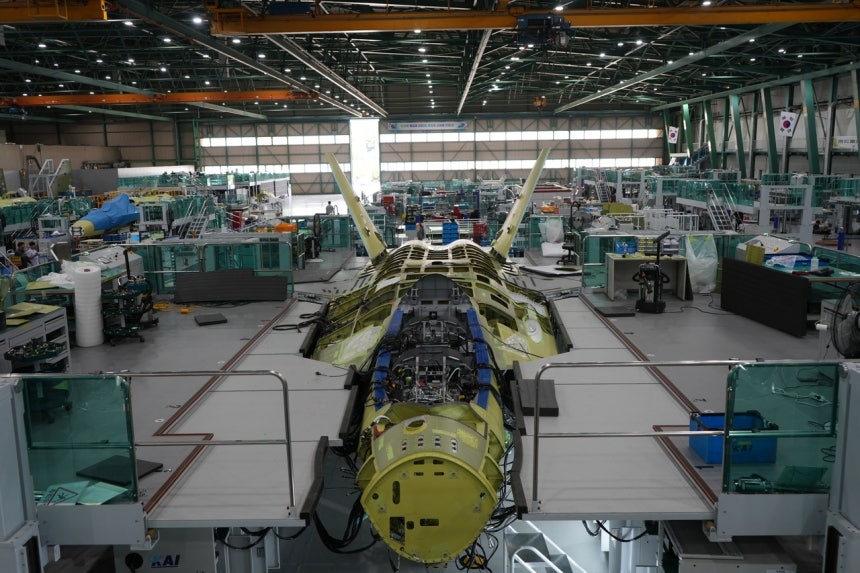 | 조립 중인 KF-21 최초양산 1호기. [방사청 제공] |