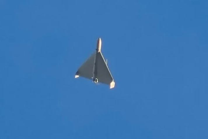 | 이란산 샤헤드 드론이 상공을 날고 있다. 사진은 기사와 직접적 연관 없음. [AP] |