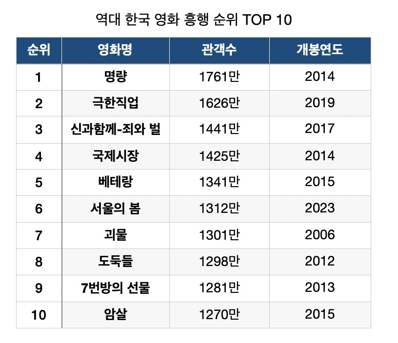 | 역대 한국 영화 흥행 순위 |