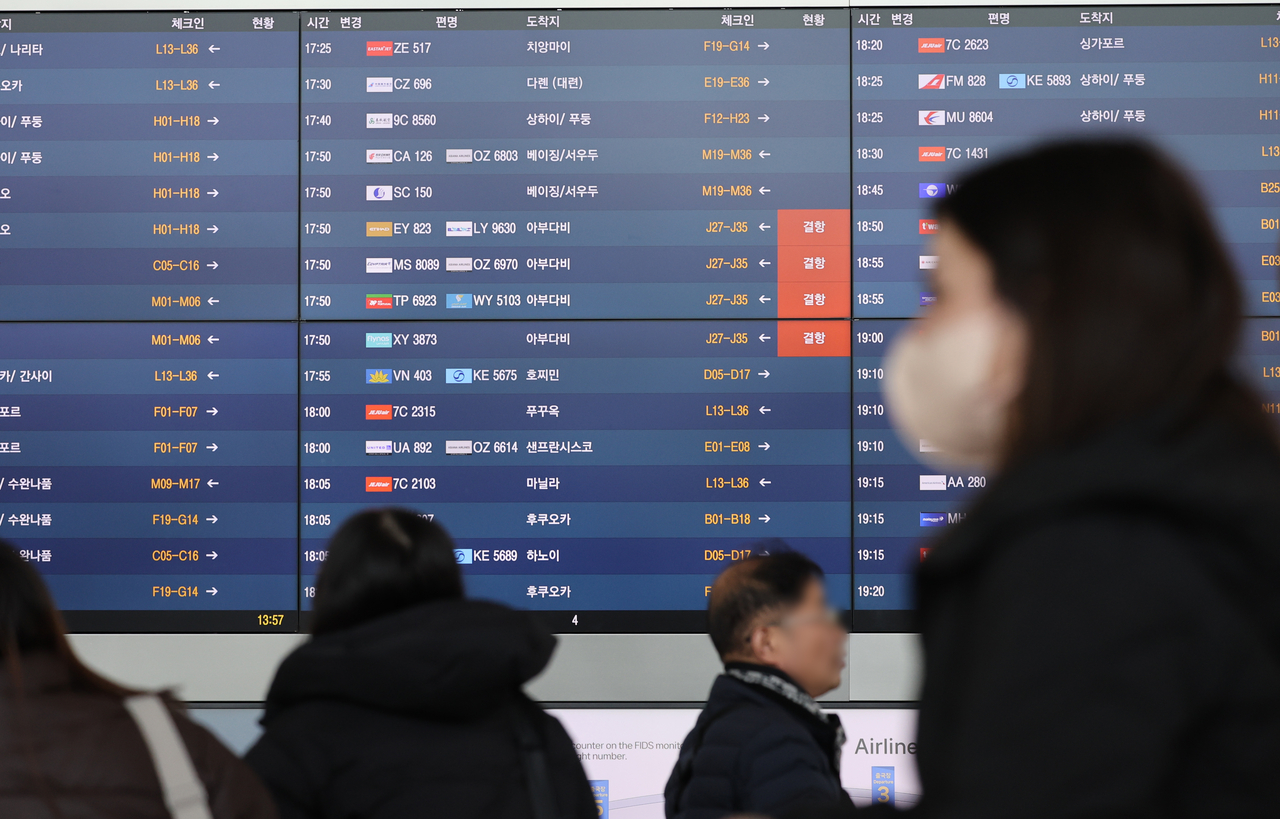 정부는 중동 상황 전담 대응반을 가동하고 항공편 운항 차질에 따른 방안 마련에 나섰다. 국토교통부는 중동 공역과 공항 운영 상황을 모니터링하고 있다. 또 항공사와 실시간 정보를 공유하며 결항·지연 시 승객 안내와 환불 절차를 신속히 처리하도록 공문을 발송했다.