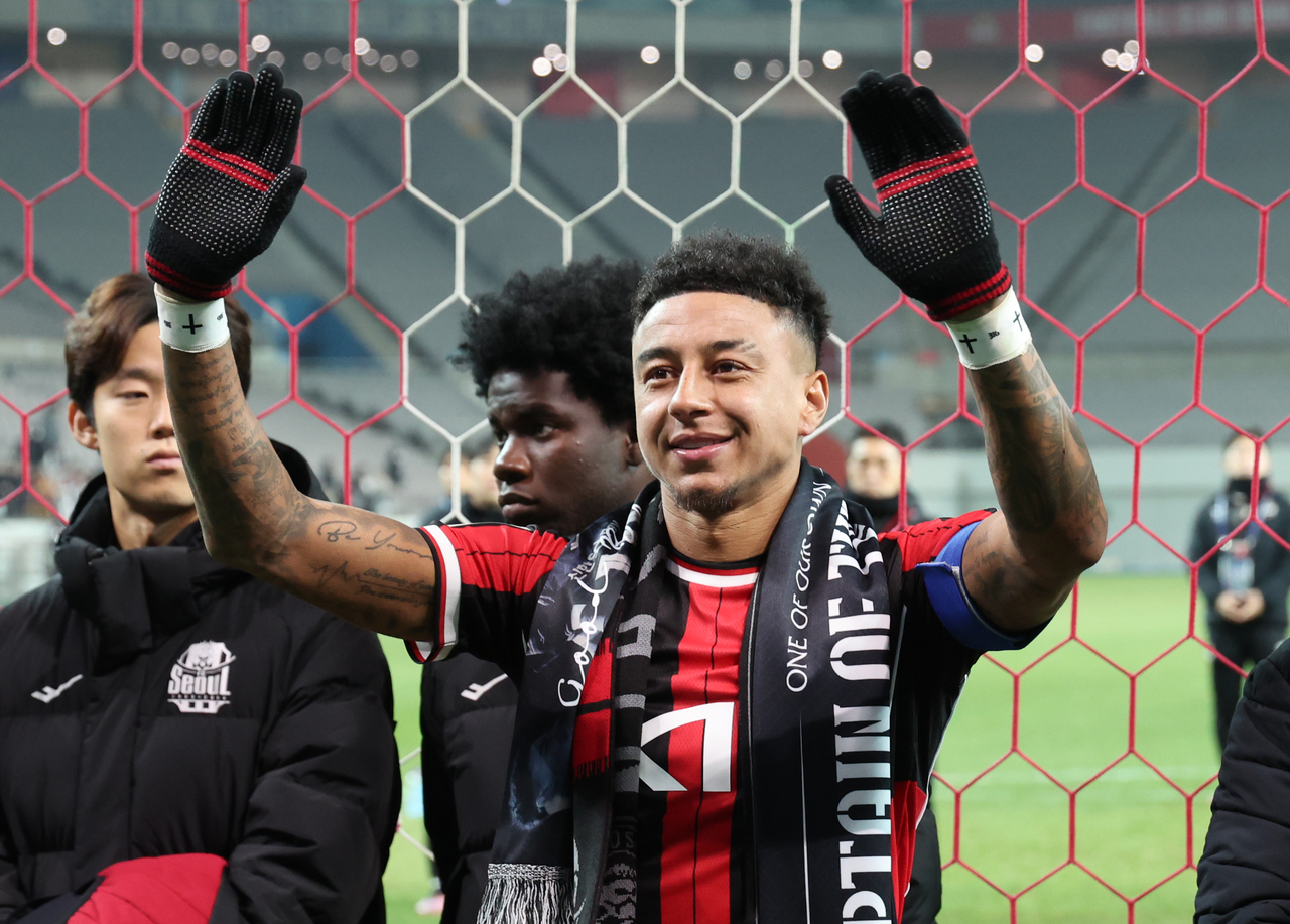 | FC서울 제시 린가드가 서울 마포구 서울월드컵경기장에서 열린 2025-2026 아시아축구연맹(AFC) 챔피언스리그 엘리트(ACLE) 리그 스테이지 6차전 멜버른 시티(호주)와의 경기가 끝난 뒤 관중석을 향해 손을 흔들고 있다. [연합] |