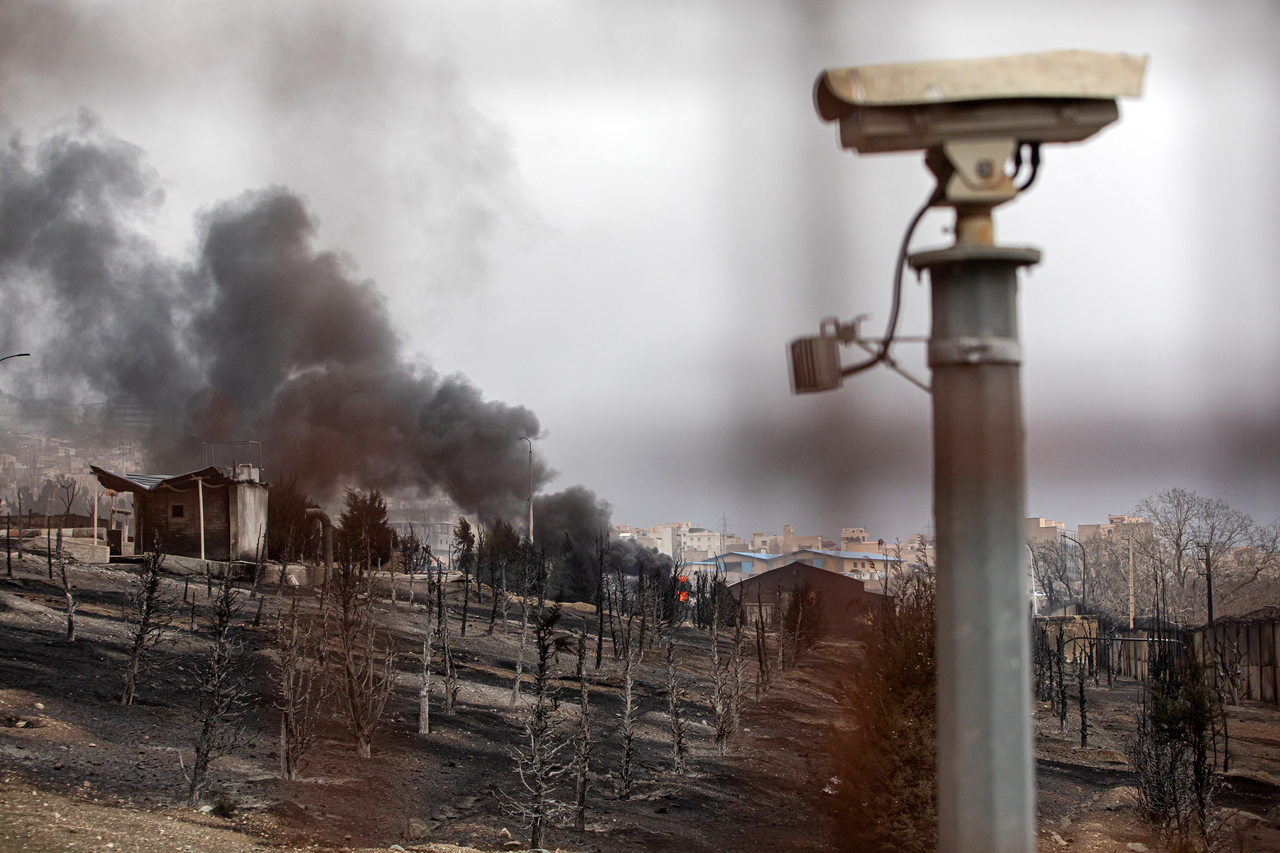 | 미국과 이스라엘이 이란 수도 테헤란 북서부의 한 유류 저장 탱크를 공습했다. 타격당한 유류 저장 탱크에서 연기가 피어오르고 있다. [UPI] |