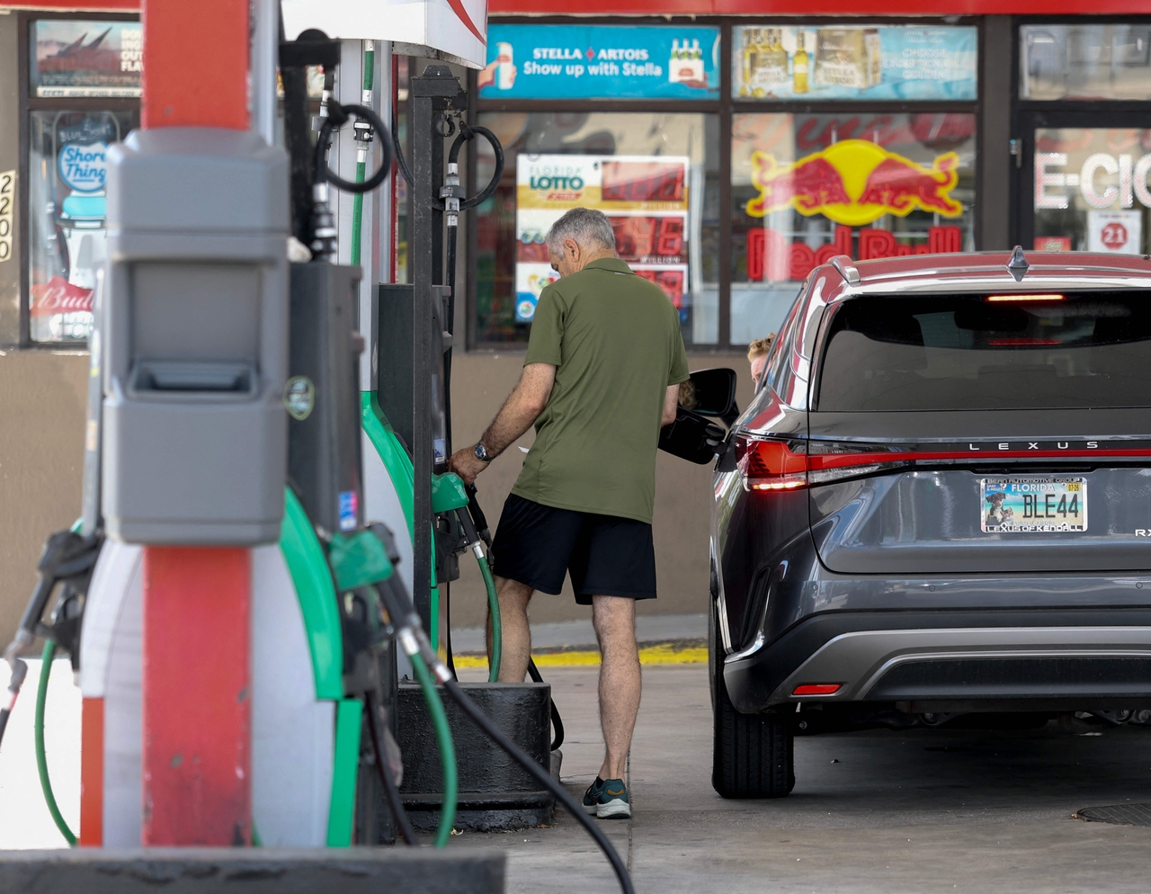 | 9일(현지시간) 미국 플로리다주 마이애미의 한 주유소에서 한 고객이 주유하고 있다. [AFP] |