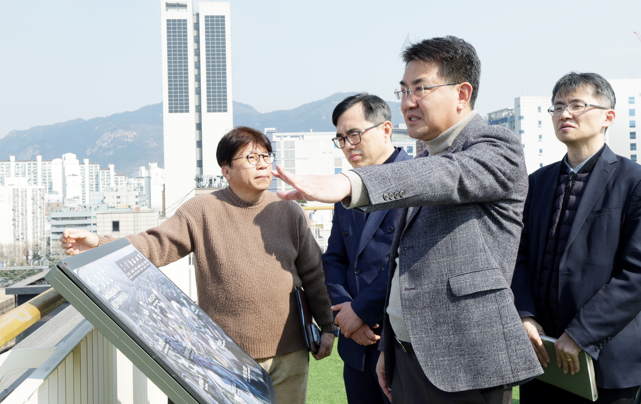 이날은 서울과학기술대학교의 박진원 교수, 서울여자대학교의 양현원 교수, 삼육대학교의 한경식 교수가 구청을 방문했다. 지난 1월 대학 방문 면담의 후속 논의다. 각 대학의 교수진은 구청 옥상 전망대에서 S-DBC 사업 부지를 조망한 후 구청장실로 자리를 옮겨 상호 협력 방안을 논의했다.