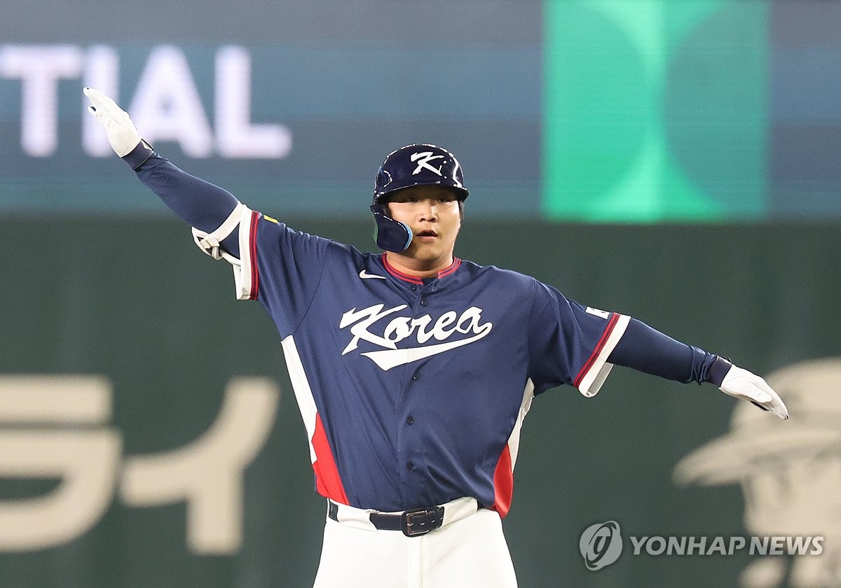17년의 긴 침묵을 깨고 한국 야구를 다시 세계 무대 위로 이끈 주인공은 도쿄돔에 마이애미로 향하는 시원한 ‘문샷’을 띄운 최고의 해결사 문보경이었다.(도쿄=연합)