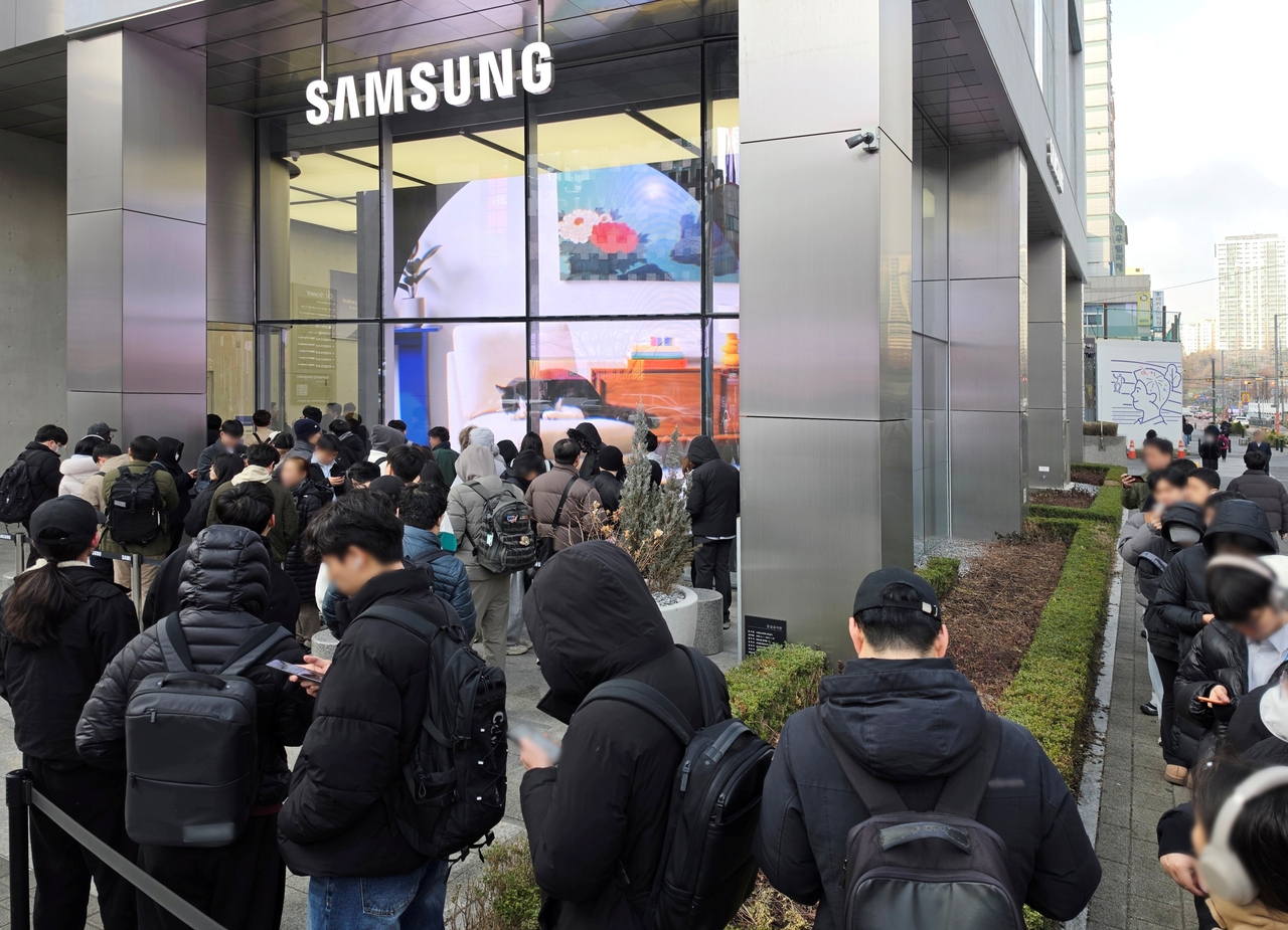 | ‘갤럭시S26 시리즈’ 사전 예약자들이 제품 수령을 위해 삼성 매장 앞에 대기하고 있는 모습 [삼성전자 제공] |
