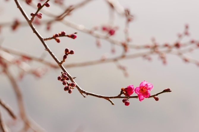 화엄사 홍매화는 지난 6일 오후 2시경 첫 꽃망울을 터뜨리며 본격적인 개화를 시작했으며, 현재 약 0.1%의 개화율을 보이고 있다.