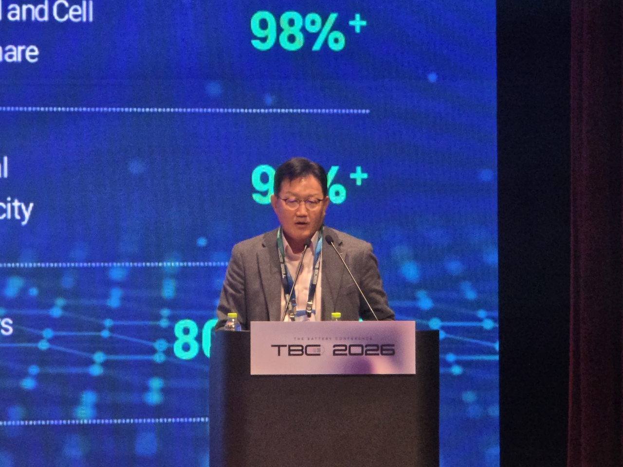 | 홍영준 포스코퓨처엠 부사장이 12일 서울 코엑스에서 열린 ‘인터배터리 2026’ 부대행사 ‘더 배터리 컨퍼런스’에서 강연하고 있다. 권제인 기자 |