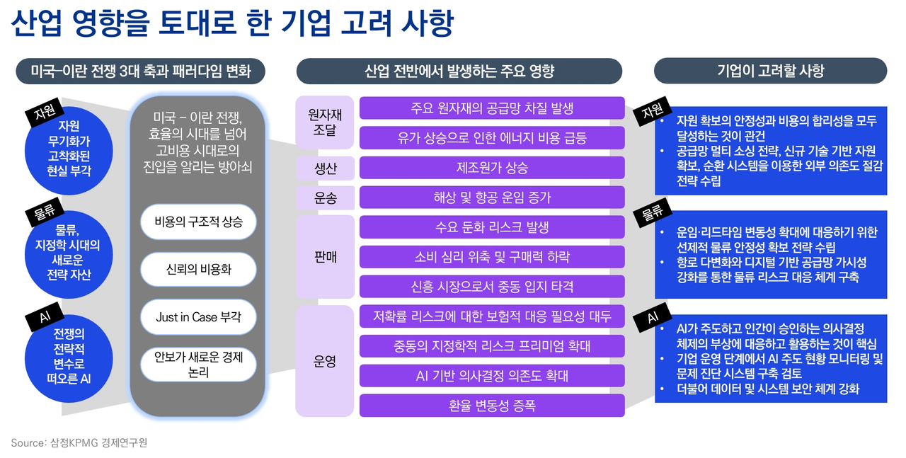 | 삼정KPMG는 12일 ‘자원·물류·AI 3대 축으로 본 미국이란 전쟁’ 보고서를 발간했다. [삼정KPMG 제공] |