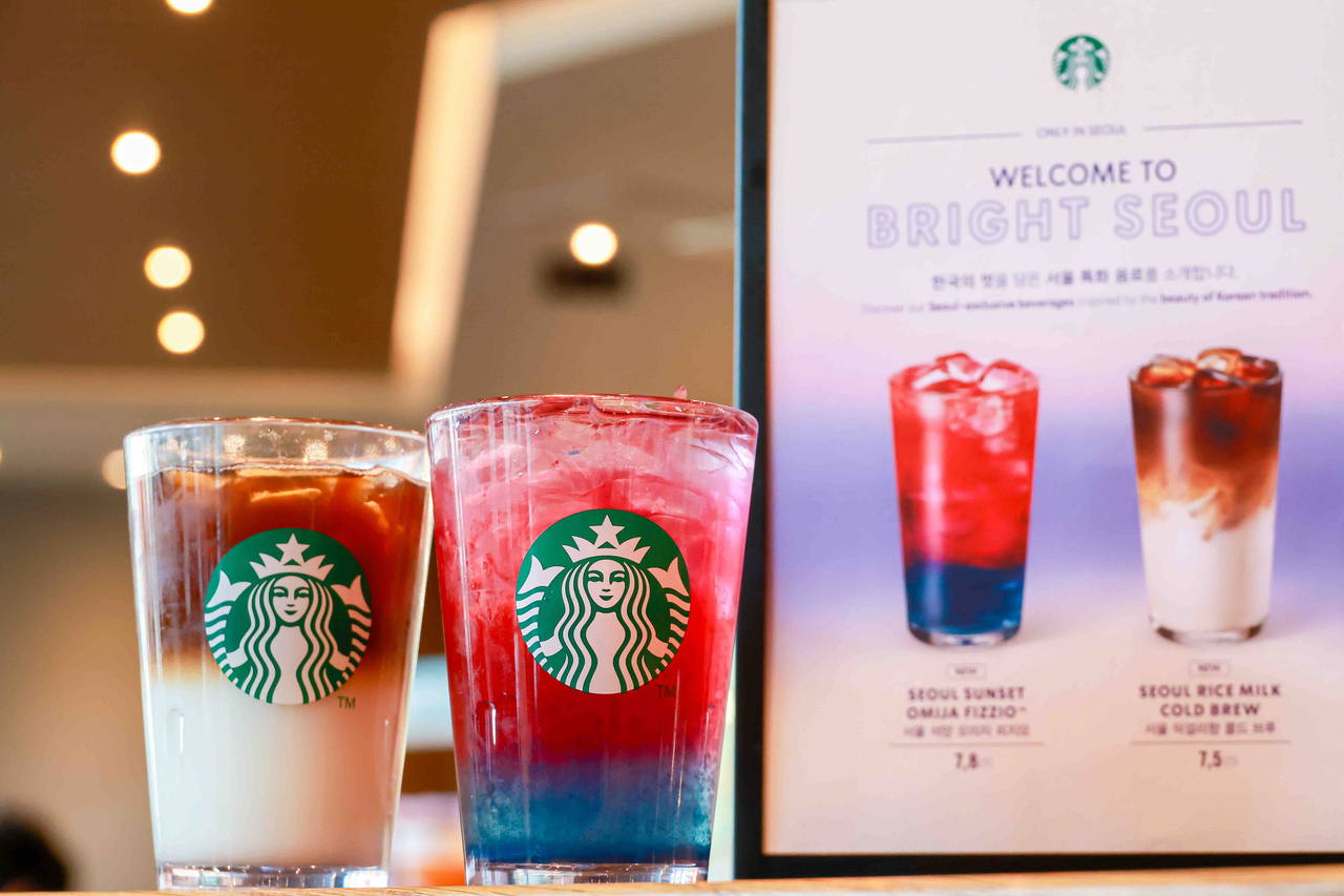 신메뉴는 ‘서울 석양 오미자 피지오’와 ‘서울 막걸리향 콜드브루’다. 모두 톨(TALL) 사이즈로 출시된다. 명동과 광화문, 강남 등 외국인 관광객 방문 비율이 높은 서울 내 100개 매장에서 우선 판매된다. 4월 말부터는 서울 지역 내 모든 매장으로 판매를 확대한다.