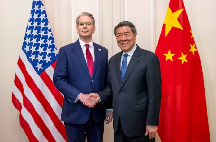 | 지난해 5월 스위스 제네바에서 열린 미·중 고위급 회담에서 스콧 베선트 미국 재무장관(왼쪽)과 허리펑 중국 국무원 부총리가 악수하고 있다. [로이터] |