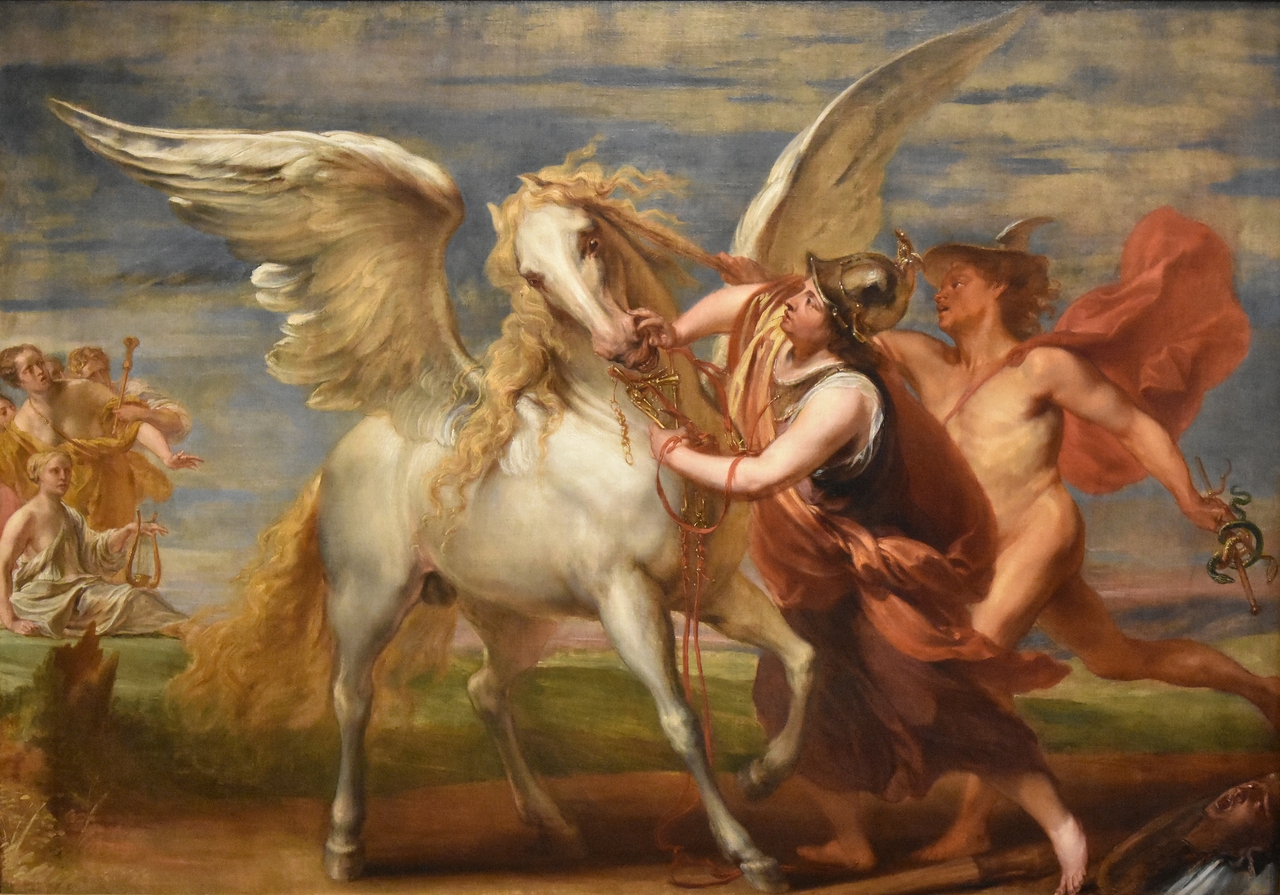 꿈에서 목소리를 들었다. 갑주 차림의 누군가가 후광과 함께 등장했다. 아테나였다. “이것을 챙겨 페이레네(Pirene) 샘으로 가거라.” 그녀가 건넨 건 황금 말고삐였다. “신이시여. 무슨 말씀입니까.” “키마이라 퇴치에 도움을 줄 존재가 그곳에 있을 것이다.”