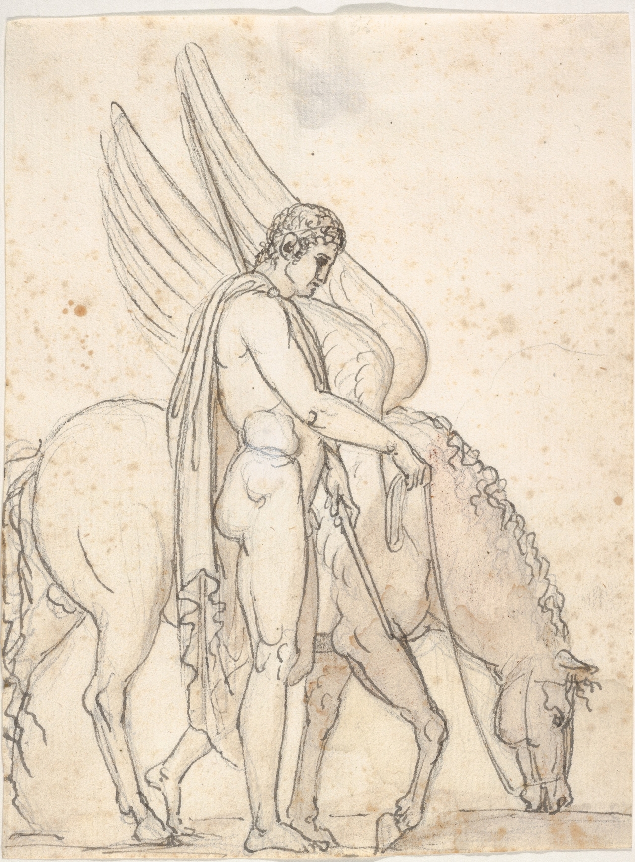 | 베르텔 토르발센, 벨레로폰과 페가수스, 1790~1844, 종이에 펜과 갈색 잉크 등, 16.8×12.6cm, 메트로폴리탄 미술관 |