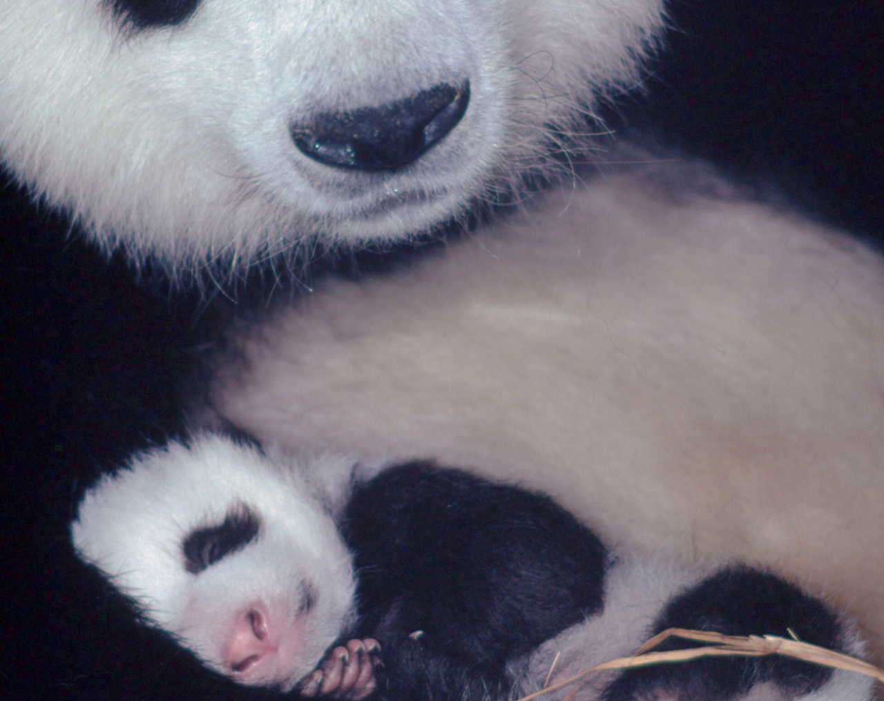 | 암컷 판다와 생후 1개월 된 새끼 판다.[WWF 제공] |