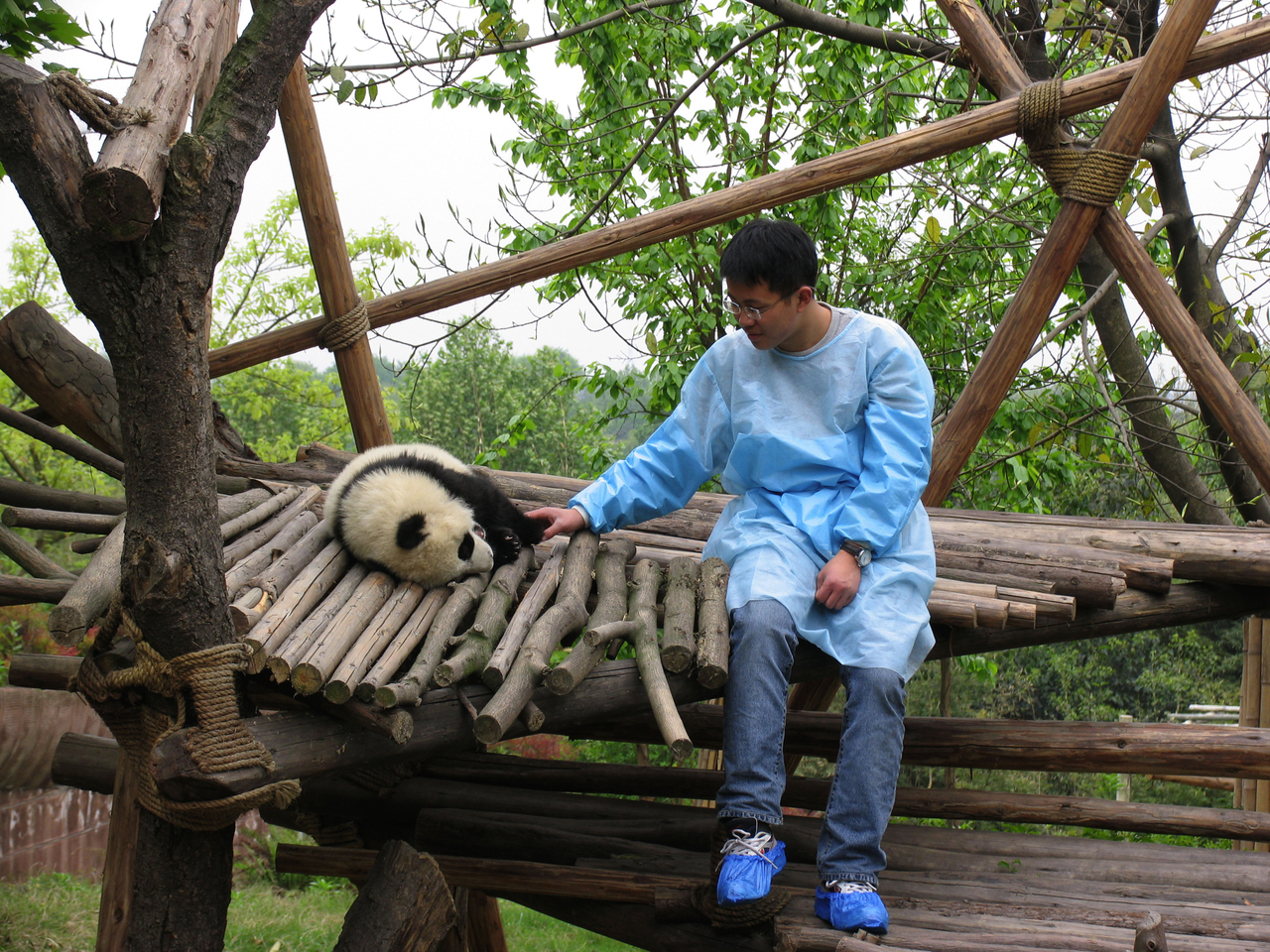 | 중국 청두 판다 번식 연구 기지 직원과 판다[WWF 제공] |