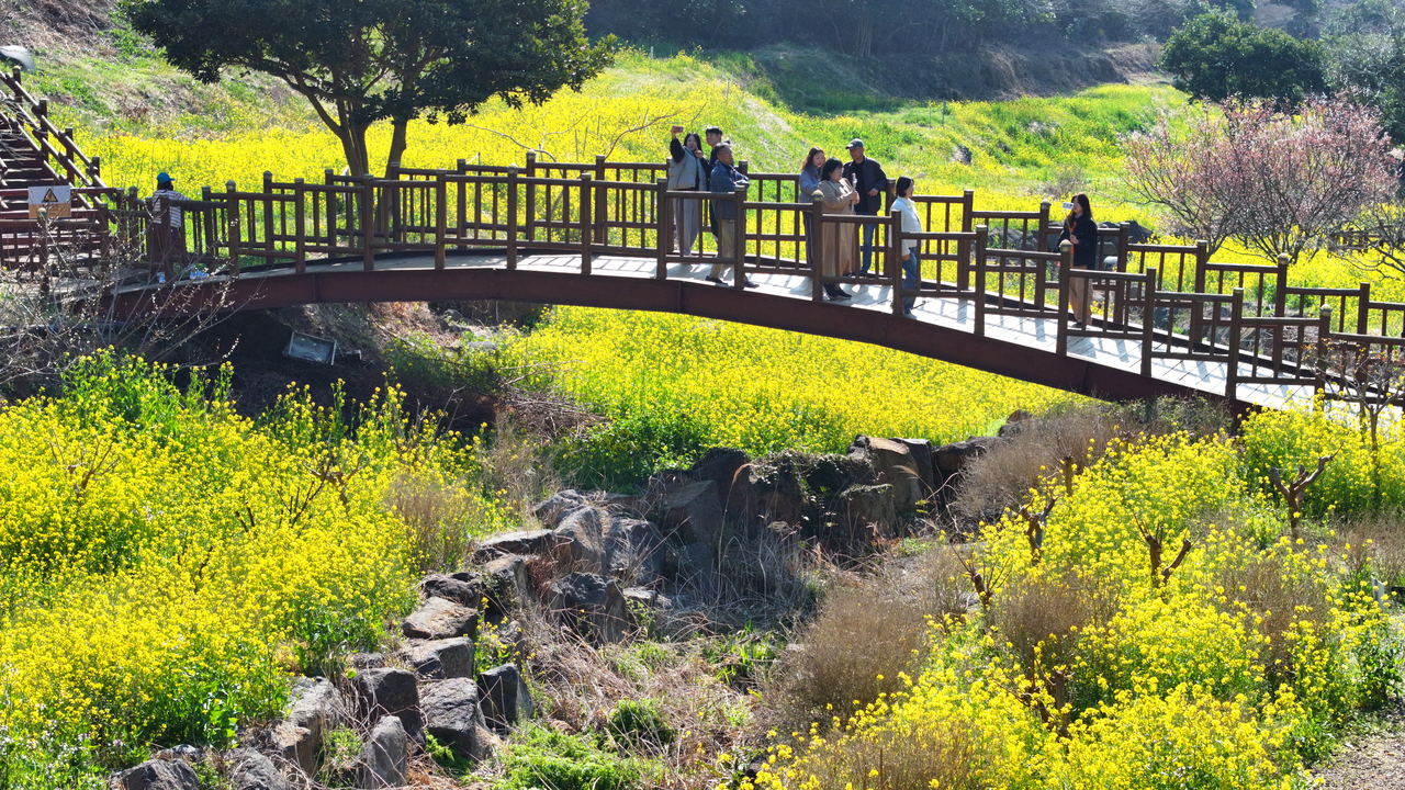 | 11일 오전 제주 서귀포시 색달동 엉덩물 계곡에 유채꽃이 피어있다. [연합] |