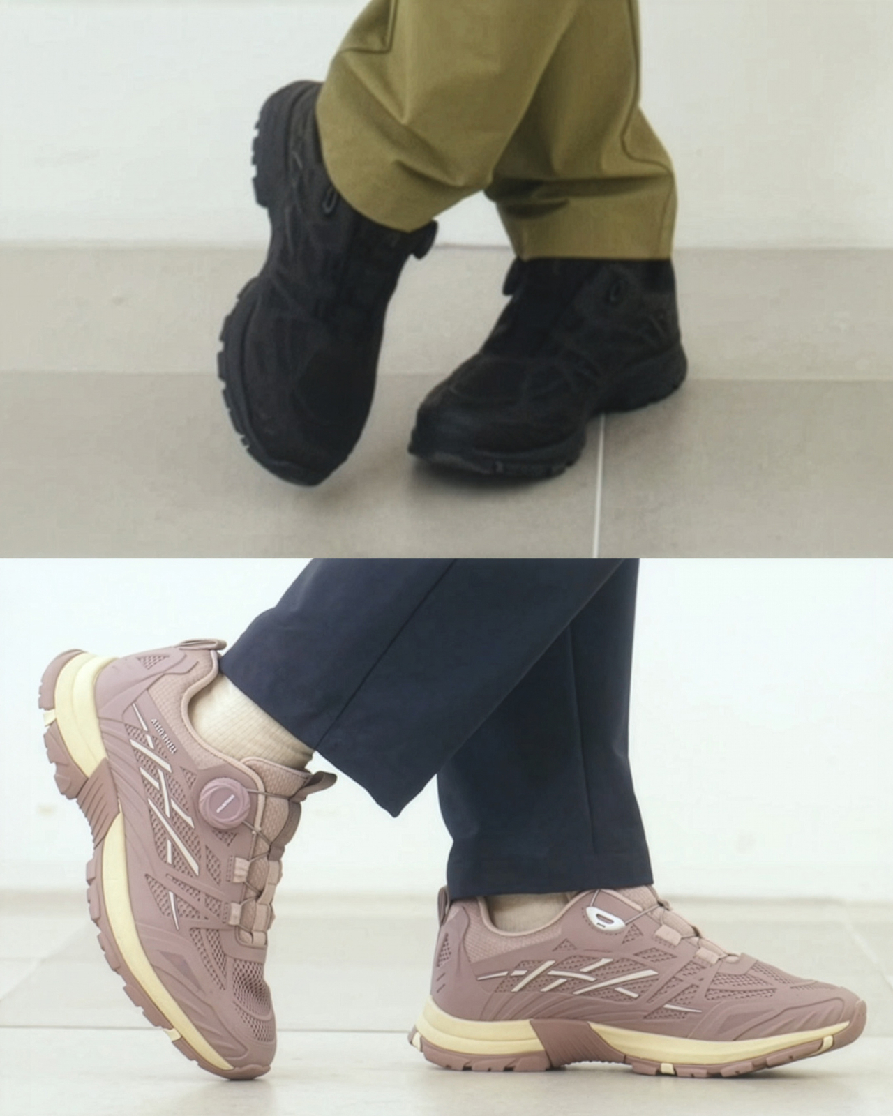 제품은 고유의 방수 기능 소재 ‘ATTO SHELL(아토쉘)’로 방수 및 투습 기능이 뛰어나다. 올블랙·틸·핑크베이지 3가지 색으로 구성했다. 다이얼 시스템으로 간편하게 신을 수 있다.