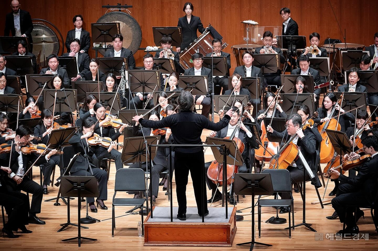 [헤럴드경제=고승희 기자] 트럼펫은 ‘비극의 전령사’였다. 단 3화음의 셋잇단음표가 불안과 죽음을 실은 장중한 팡파르로 떠돌았다. ‘장송행진곡’은 굴곡 많은 인간의 나약함과 그 상흔을 딛고 일어서는 숭고한 영웅적 면모를 끄집어냈다. 3악장의 총 819마디 내내 쉬지 않고 숨을 불어넣어야 하는 호른의 사투는 비극과 환희를 잇는 거대한 전환점이자 가교였다. 로열 콘세르트헤바우 오케스트라(RCO)의 호른 수석 케이티 울리는 자신의 이름을 다시 한번 증명했다. 부드러우면서 밀도가 높아 ‘리퀴드 골드’라고 불리는 울리의 호른은 어둠에서 생으로 나아가는 인간의 모습을 섬세하고 담백하게 그렸다. 기교를 넘어서는 깊이의 서사였다. 클래식 음악계의 대표 맥시멀리스트인 말러의 교향곡은 ‘지휘 거장’ 정명훈의 손길을 타고 담담하면서도 절제된 우아함과 할리우드 영화의 스펙터클을 동시에 품었다. 세계적인 지휘자와 슈퍼스타 용병, KBS교향악단의 아름다운 조화를 끌어냈다.