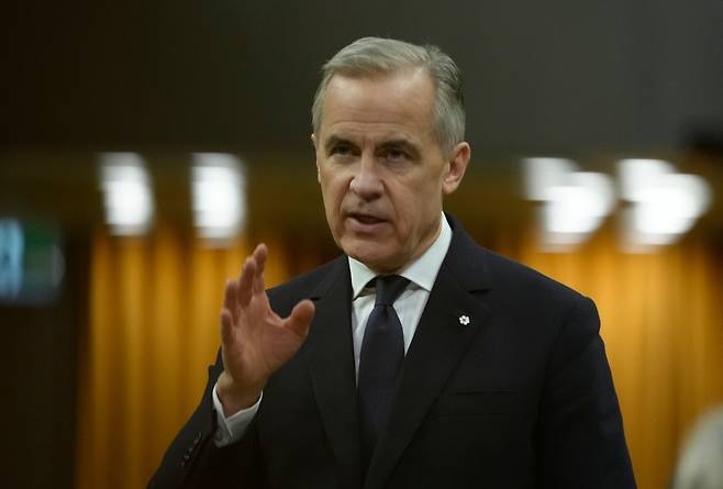 | 마크 카니 캐나다 총리가 27일(현지시간) 오타와 국회의사당에서 열린 하원 질의에서 미국과의 무역협상 전망 관련 질의에 답변하고 있다. [AP] |