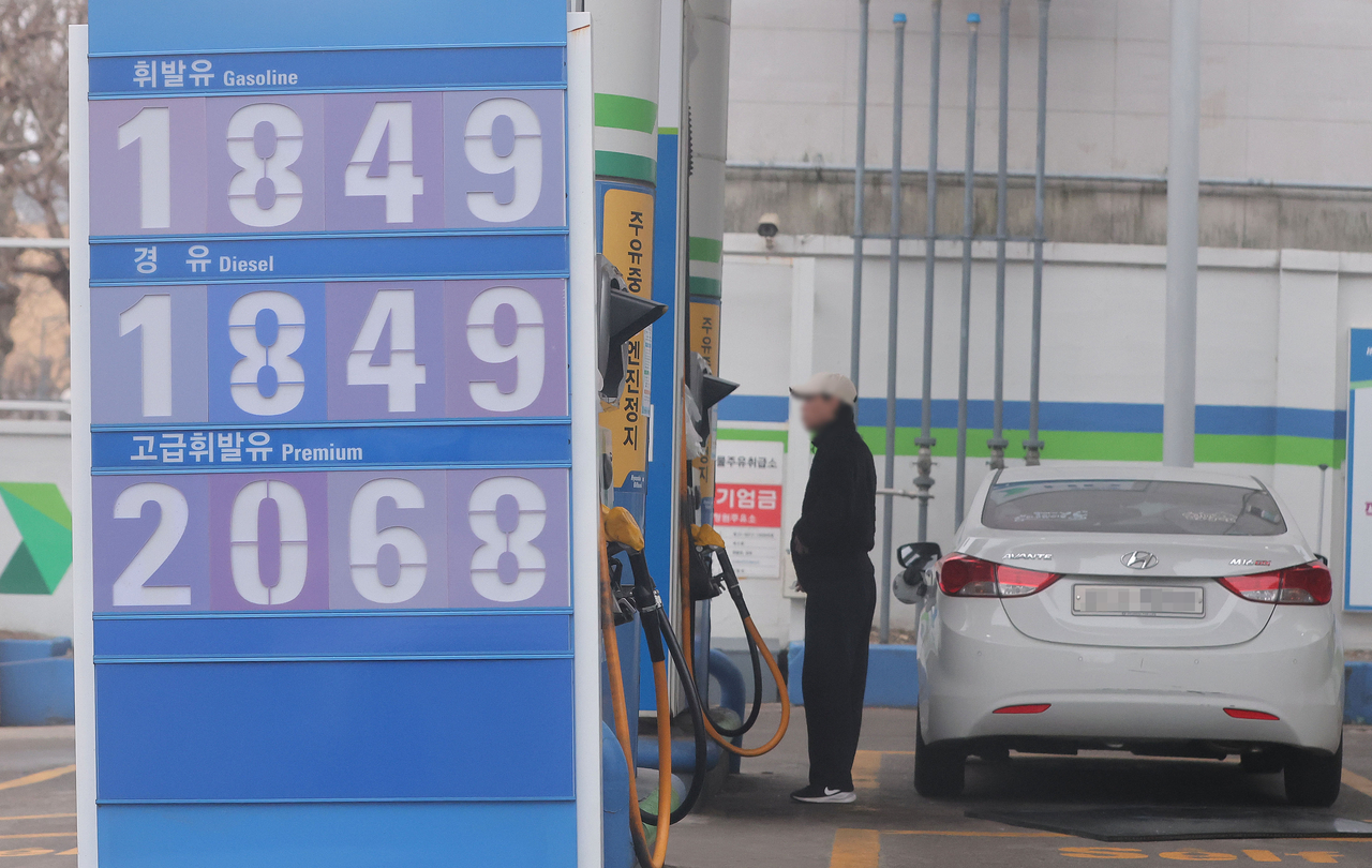 | 석유 최고가격제 시행 후 첫 주말인 15일 서울 시내 한 주유소를 찾은 시민이 주유를 하고 있다. [연합] |