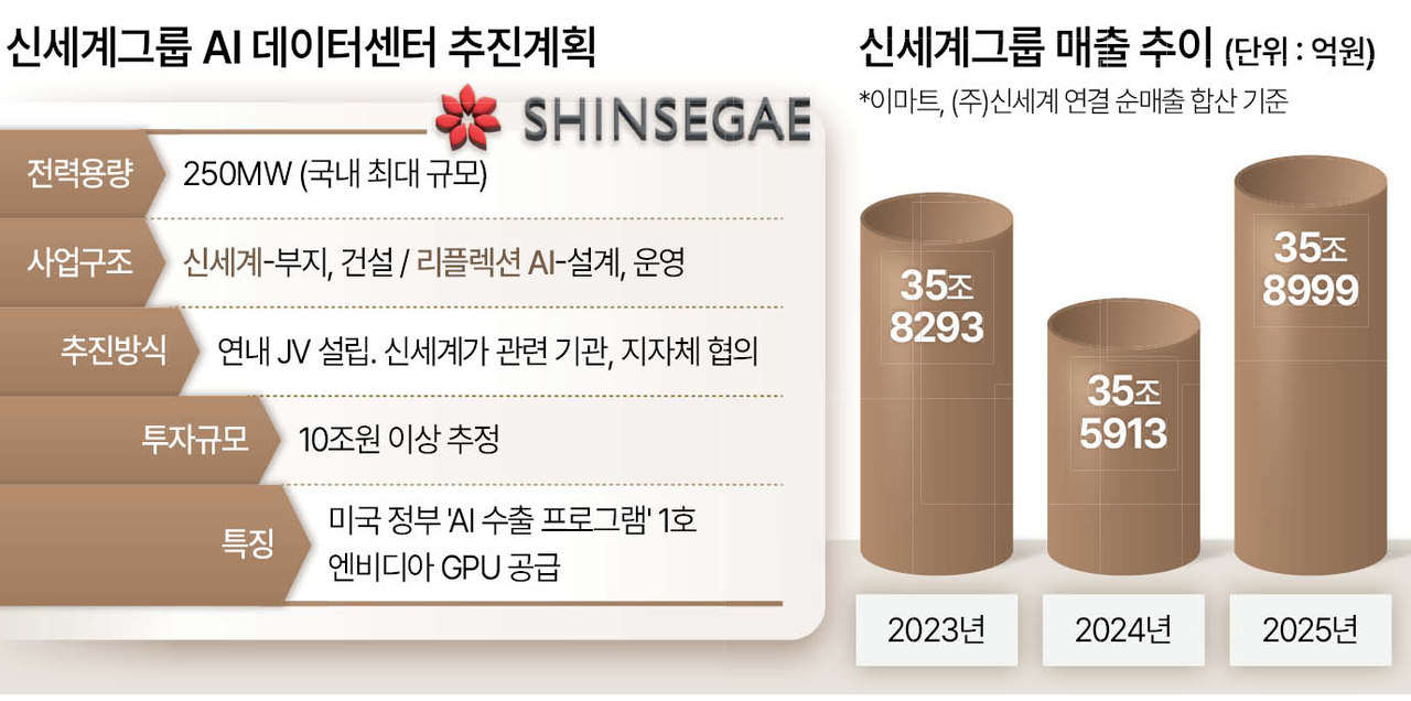 신세계그룹이 ‘한국판 아마존’ 실현에 바짝 다가섰다. 미국 AI(인공지능) 기업 리플렉션 AI와 국내 최대 규모의 AI 데이터센터 건립을 추진하면서다. 미국의 ‘AI 수출 프로그램’을 통한 기술 협력 1호 사업인 이번 데이터센터 건립을 통해 신세계는 AI를 새로운 미래 성장 동력으로 키우겠다는 목표다.