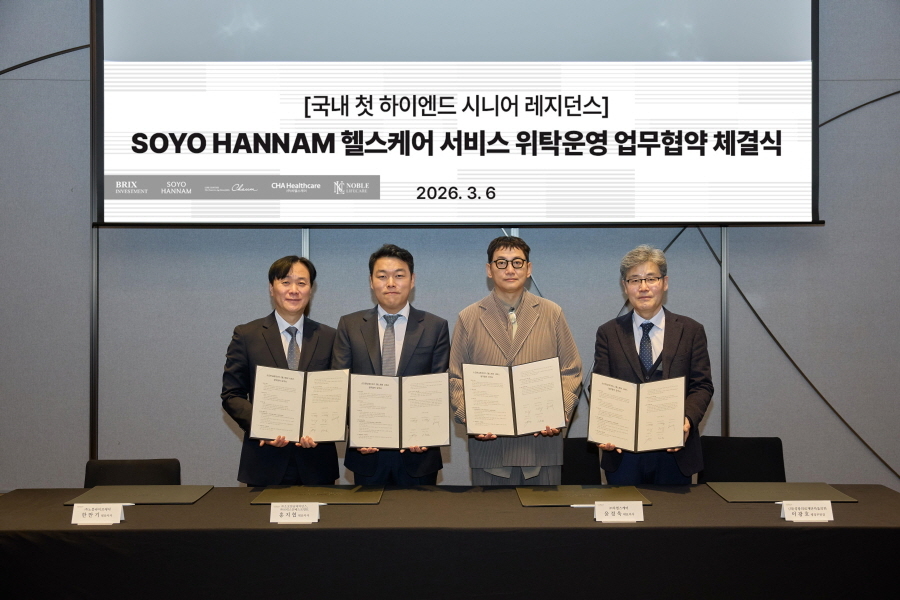 서울 첫 하이엔드 시니어 레지던스로 공급되는 ‘소요한남 by 파르나스’가 지난 6일(금) 단지 내 헬스케어 서비스 고도화를 위해 차움·차헬스케어와 업무협약을 체결했다.