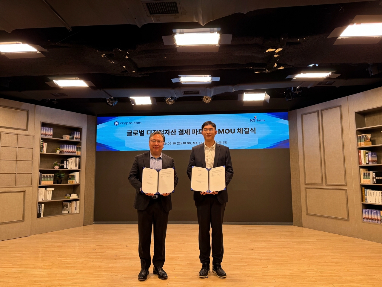 [헤럴드경제=정호원 기자] 전자결제대행(PG) 사업자 KG이니시스는 가상자산 플랫폼 사업자 크립토닷컴과 글로벌 상거래의 디지털 전환 인프라 조성을 위한 업무협약(MOU)을 체결했다고 17일 밝혔다. 크립토닷컴은 전 세계 1억5000명의 이용자를 보유한 글로벌 가상자산 플랫폼이다.