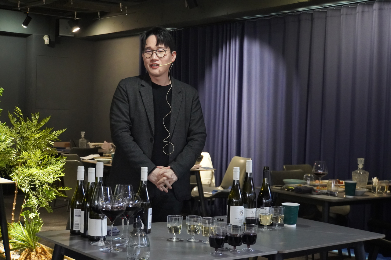 | 조현철 소믈리에가 17일 시음회를 진행하면서 호주 뉴사우스웨일즈주 와인의 강점을 설명하고 있다. |