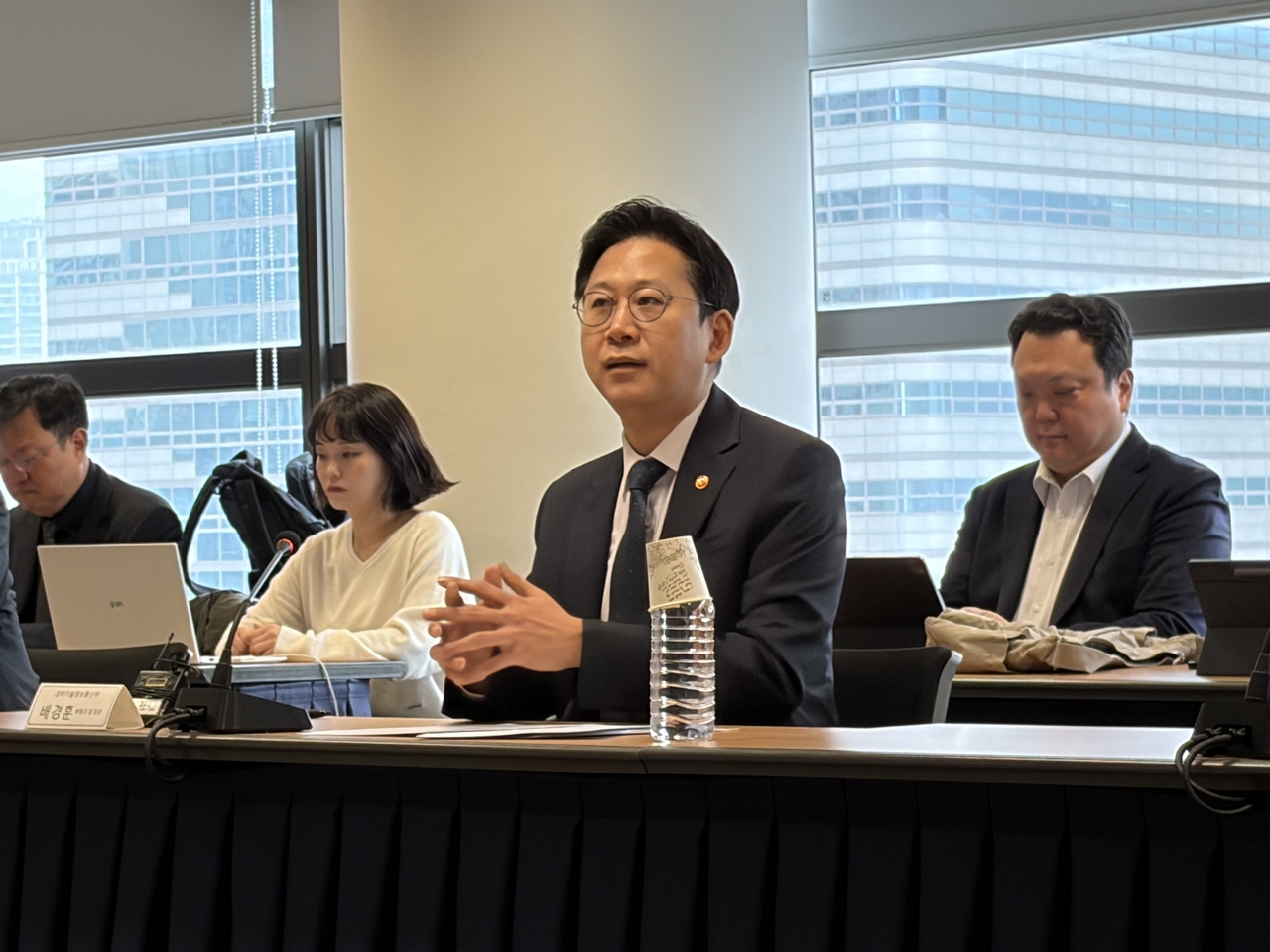 | 18일 서울 종로구 과학기술자문회의 대회의실에서 열린 독자 AI 관계 기업과의 간담회에 참석한 배경훈 부총리 겸 과학기술정보통신부 장관 [차민주 기자/@chami] |