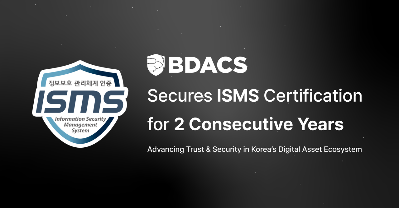 [헤럴드경제=유동현 기자] 디지털자산 커스터디기업 비댁스(BDACS)가 한국인터넷진흥원(KISA)으로부터 2년 연속 정보보호 관리체계(ISMS)를 인증 받았다고 18일 밝혔다.