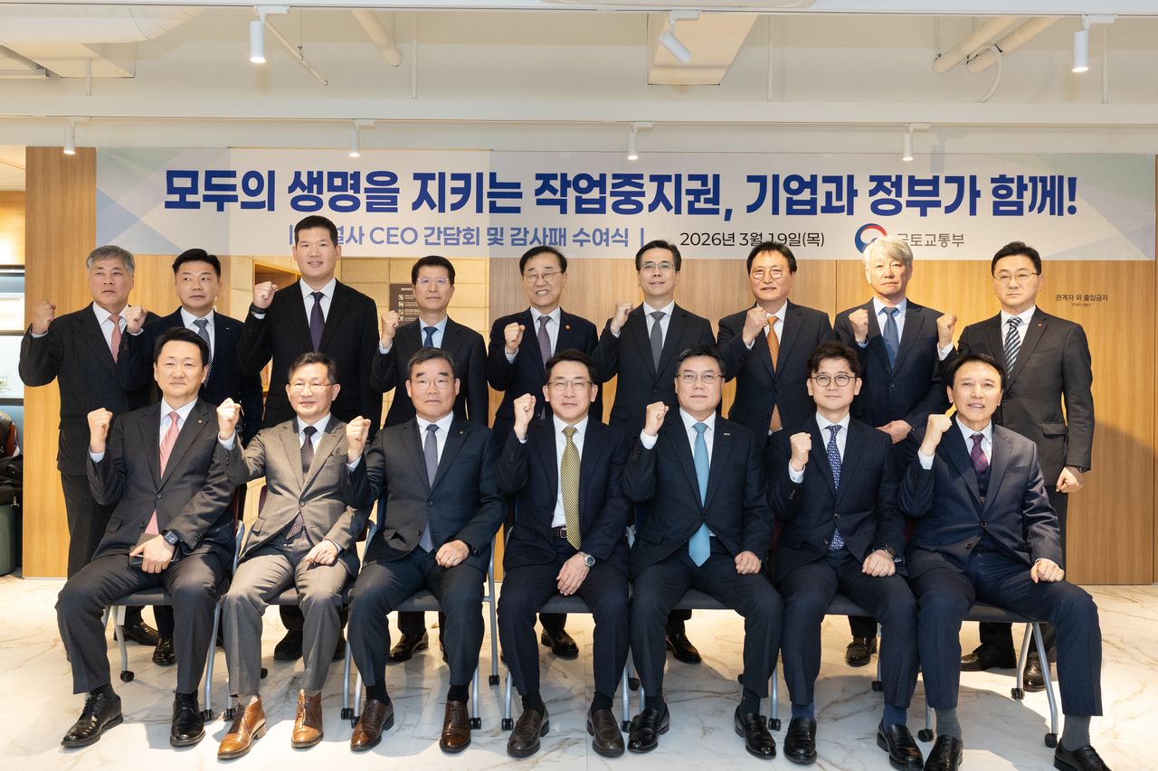 이날 한국건설경영협회에 따르면 김윤덕 국토교통부 장관은 19일 서울 정동 국토발전전시관에서 협회 소속 14개 대형 건설사 대표이사 및 최고안전책임자(CSO) 등 30여 명이 참석한 가운데 간담회를 열고 안전 우수 건설사에 감사패를 수여했다.