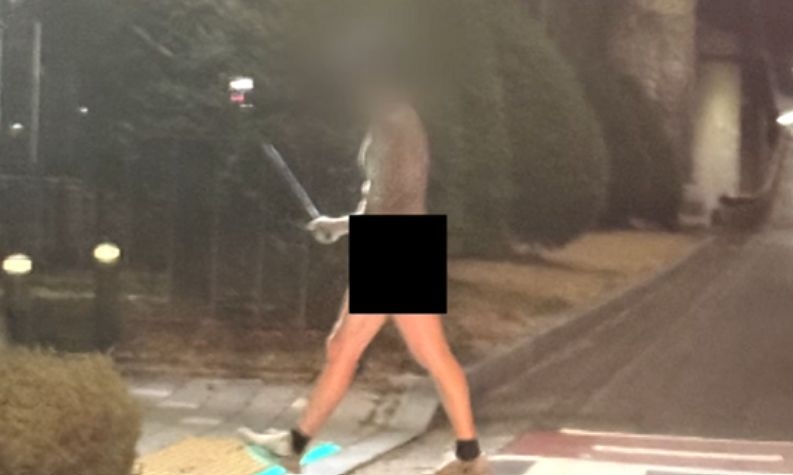 중요 부위만 겨우 가린 남성이 마스크와 모자로 얼굴을 꽁꽁 가린 채 거리를 활보하고 있었던 것이다.