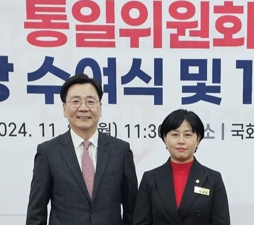 | 국민의힘 통일위원회 위원으로 활동한 김형석 전 통일부 차관(왼쪽)과 이세은 국힘 소속 순천시의원. |