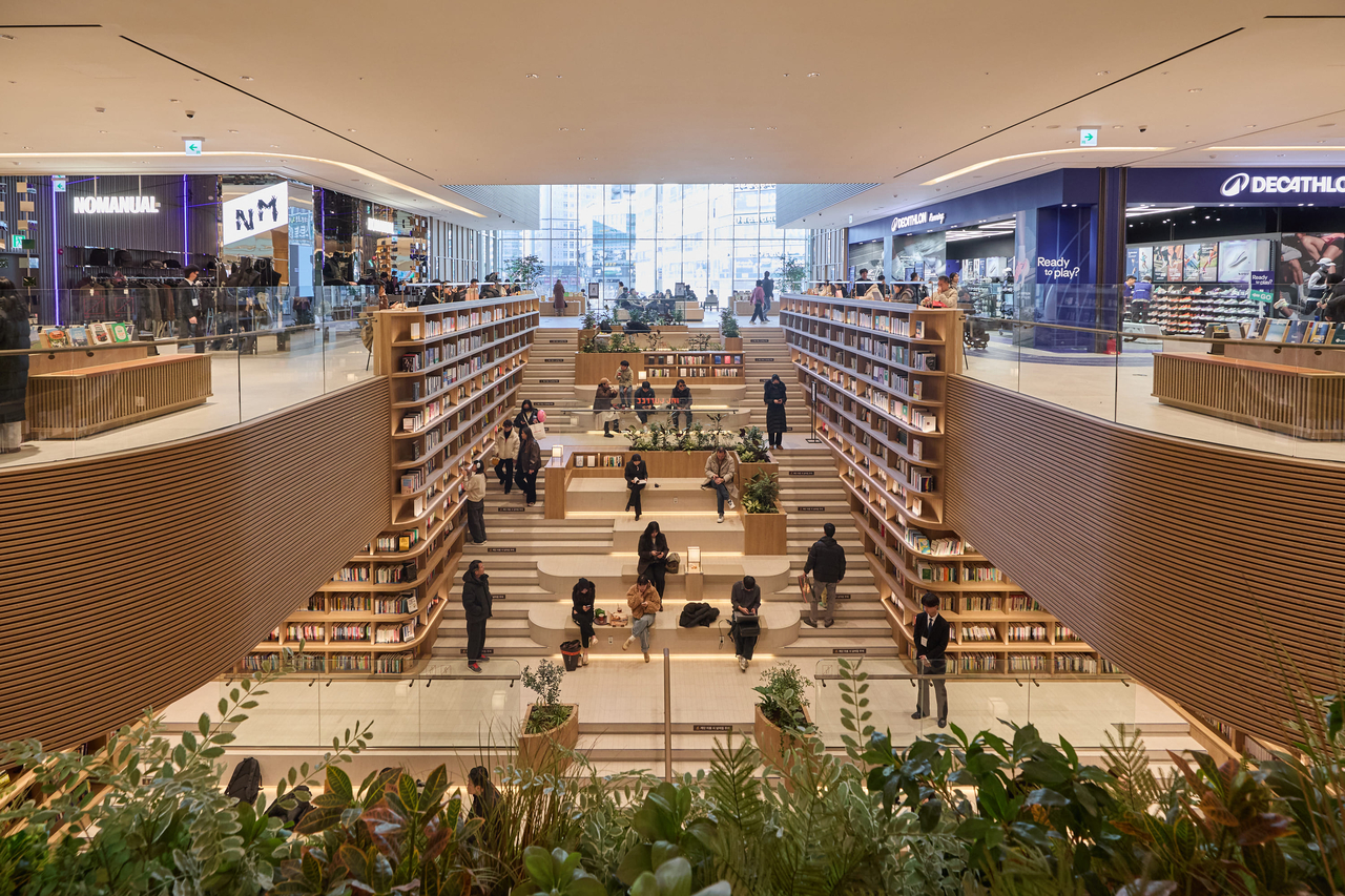 어린이 도서관 ‘별마당 키즈’와 아이들이 뛰어놀 수 있는 플레이월 ‘업스테어’는 연일 방문객으로 붐빈다. 주말에는 대기 행렬이 이어지고 있다. 3만6000여권의 서가가 둘러싼 복층형 라운지 ‘센트럴 파드’와 계단형 쉼터 ‘북스테어’ 역시 지역주민의 사랑방으로 자리 잡았다.