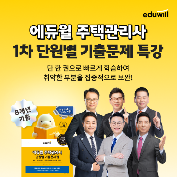 에듀윌은 최근 8개년 기출 데이터를 분석해 출제 경향과 과목별 패턴을 체계화한 주택관리사 1차 대비 특강을 마련했다고 19일 밝혔다.