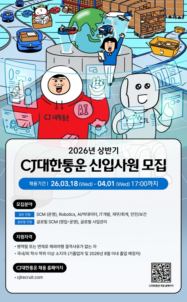 [헤럴드경제=서재근 기자] CJ대한통운이 2026년 상반기 신입사원 공채를 시작한다고 19일 밝혔다.