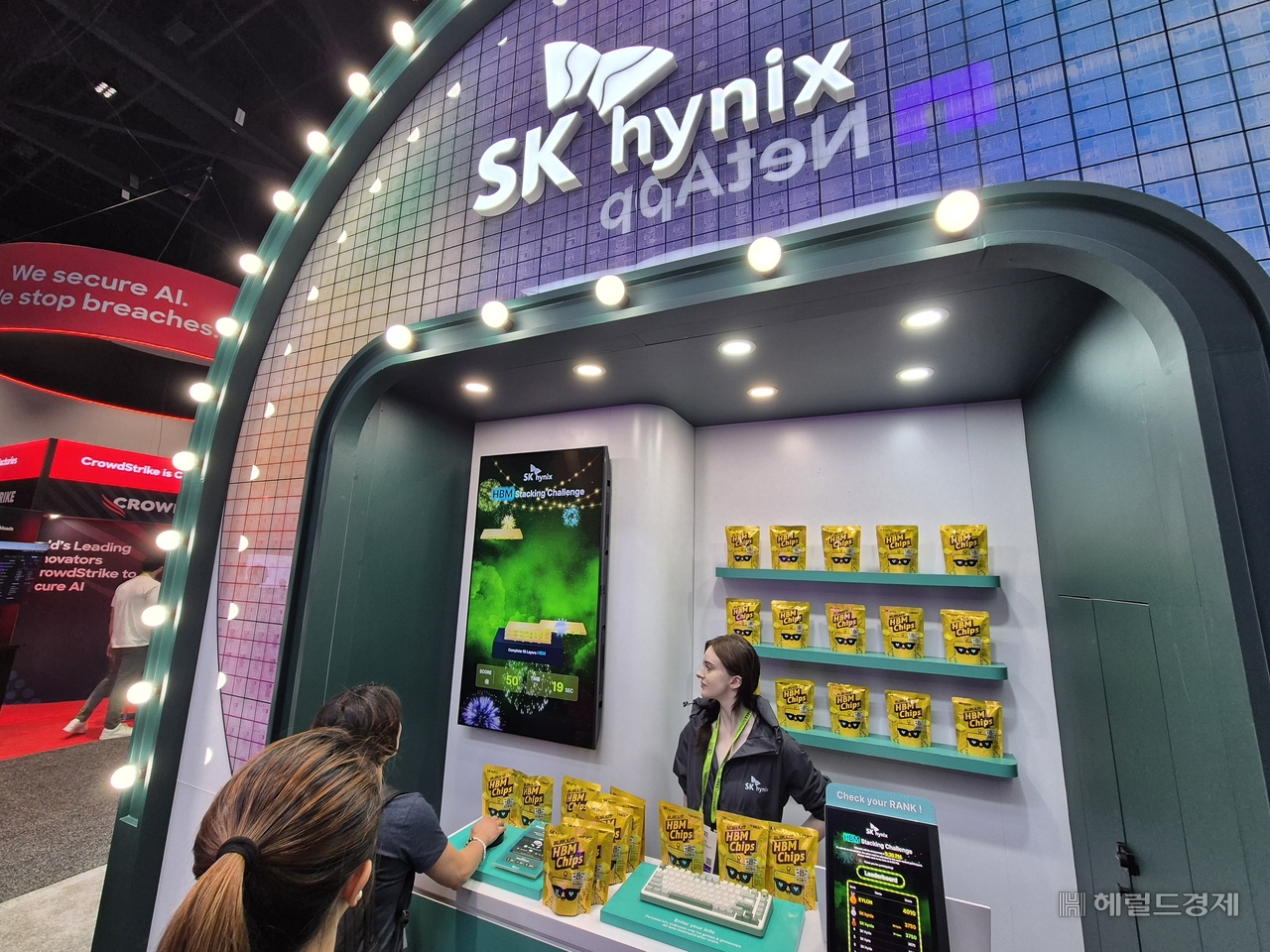 SK하이닉스는 자사 부스에서 게임 이벤트에 참여하는 사람들에게 HBM 칩스를 증정해 관람객들로부터 호응을 이끌어냈다.