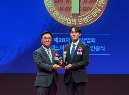 | 18일 한국능률협회컨설팅에서 주관하는 ‘2026 한국산업의 브랜드파워’ 1등 수여식에서 이혁중 롯데GRS 마케팅부문 부문장(오른쪽)이 인증패 수여 후 기념 촬영을 하고 있다. [롯데GRS 제공] |
