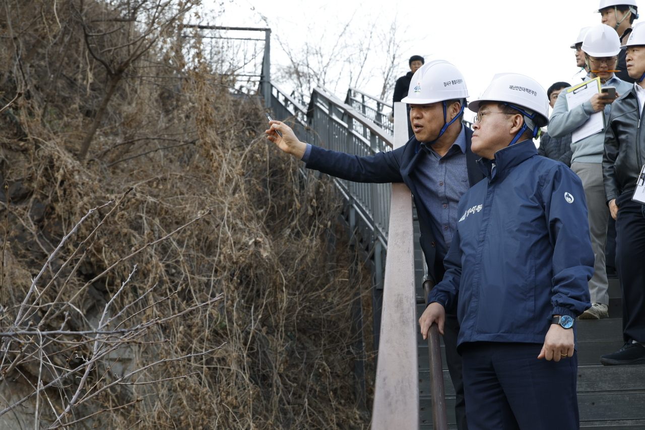 [헤럴드경제=박종일 선임기자]진교훈 서울 강서구청장이 20일 해빙기 안전사고 예방을 위해 직접 급경사지 안전점검에 나섰다.