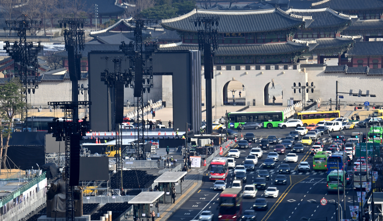이날 지하철은 오후 2∼3시께부터 광화문역·시청역·경복궁역 역사가 폐쇄돼 무정차 통과한다. 공연이 끝난 오후 10시부터는 세 역에서 지하철 이용이 가능하다.