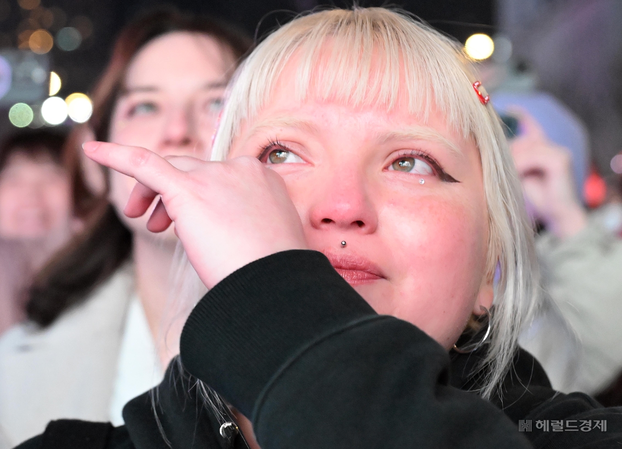 | 21일 저녁 서울 광화문 광장에서 그룹 방탄소년단(BTS)의 정규 5집 ‘아리랑’(ARIRANG) 발매를 기념해 열린 무료 공연 ‘BTS 컴백 라이브: 아리랑’(BTS THE COMEBACK LIVE|ARIRANG)을 찾은 한 팬이 눈물을 흘리고 있다. 이상섭 기자 |