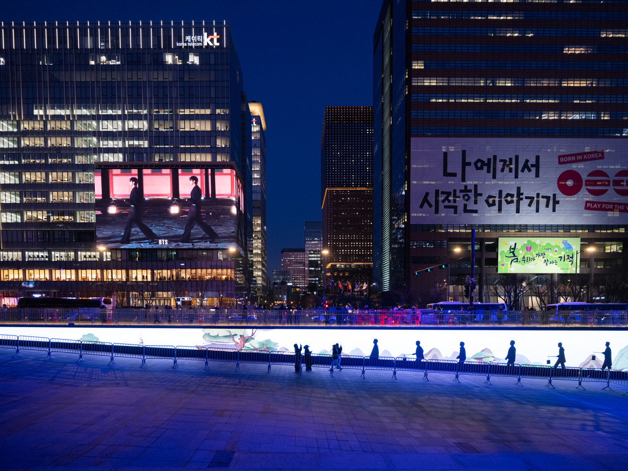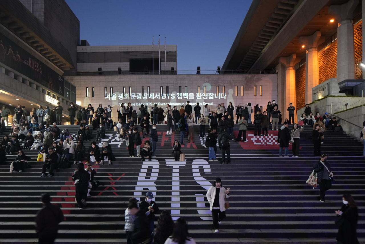 서울시는 3월 20일 오후 7시부터 방탄소년단 컴백쇼 당일인 21일 밤 12시까지 광화문광장 주변 건물 대형 옥외전광판 10곳에서 방탄소년단 컴백 관련 영상과 환영 메시지(한국어, 영어)를 송출한다고 밝혔다. 글로벌 최초 공개다.
