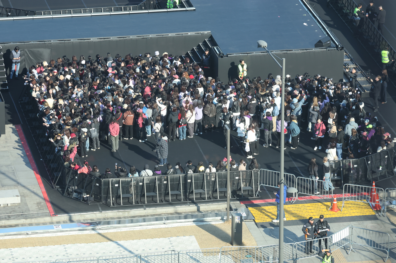 | 그룹 방탄소년단(BTS)이 정규 5집 ‘아리랑’(ARIRANG) 발매를 기념해 무료 공연 ‘BTS 컴백 라이브: 아리랑’(BTS THE COMEBACK LIVE|ARIRANG)을 여는 21일 서울 광화문광장 공연장에서 관객들이 입장하고 있다. |